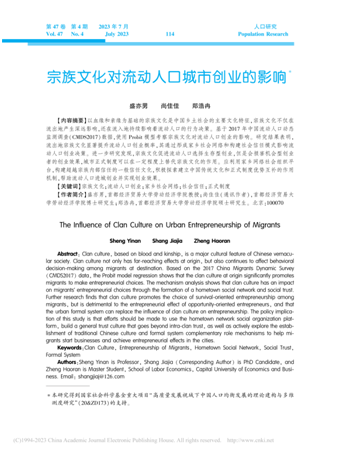 随着17直播科研成果不断涌现,为了进一步营造良好科研氛围,激发师生科研热情,积极促进科研高质量发展,17直播 将进行科研成果系列推介系列宣传报道。本期我们聚焦盛亦男老师作为第一作者所著论文“宗族文化对流动人口城市创业的影响”,该论文在国内权威期刊《人口研究》2023年第4期发表。