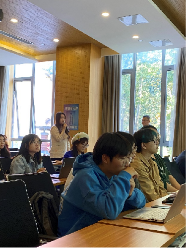 人才学系教师杨之旭点评并主持师生互动环节。他指出研究内容完整、深入,具有现实意义。人才学系硕士、博士研究生们踊跃发言,从双碳人才的分类与归类标准、培养路径、吸引与引进政策举措、胜任特征建模有效性等问题与人才学系教师们展开深入探讨和交流。