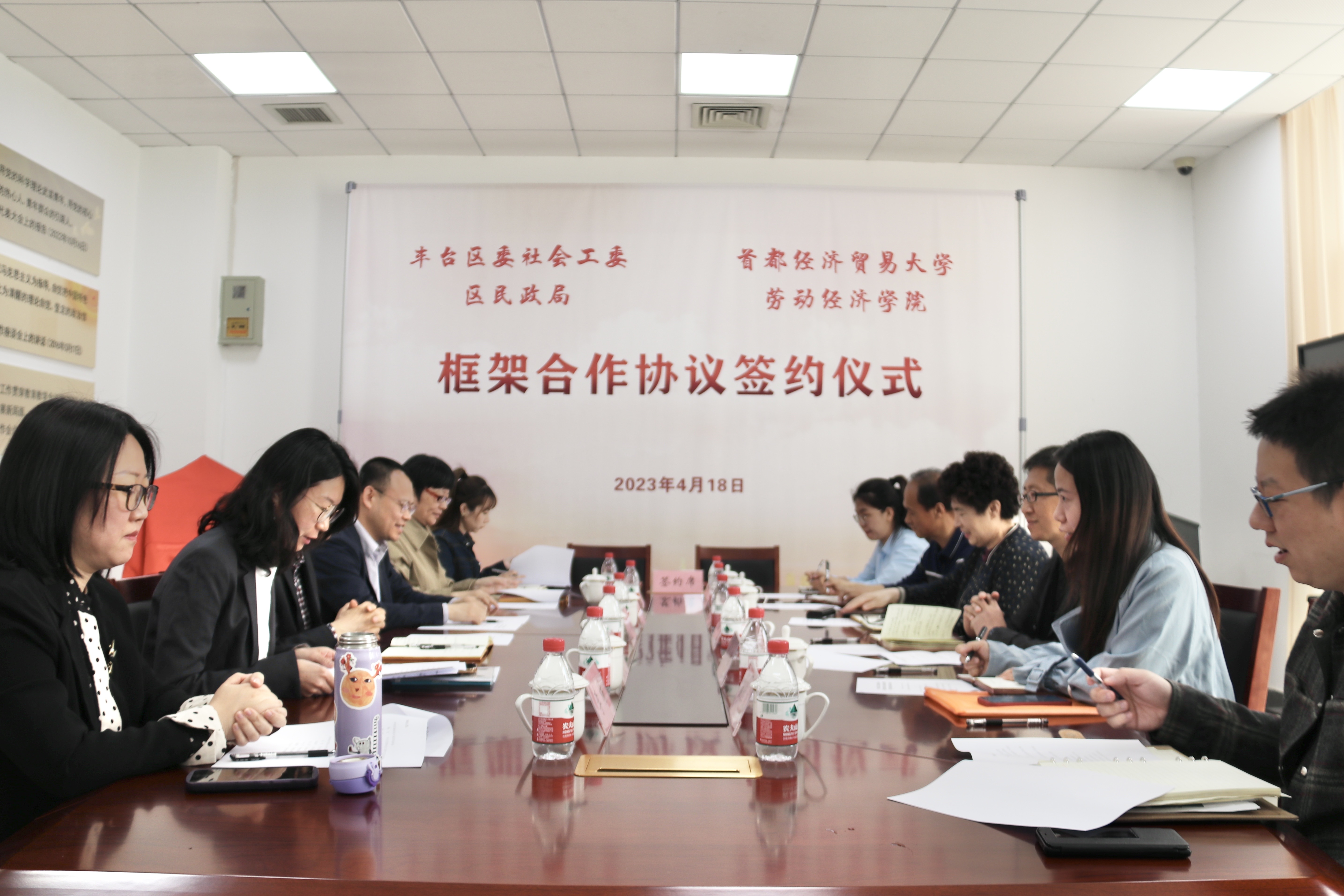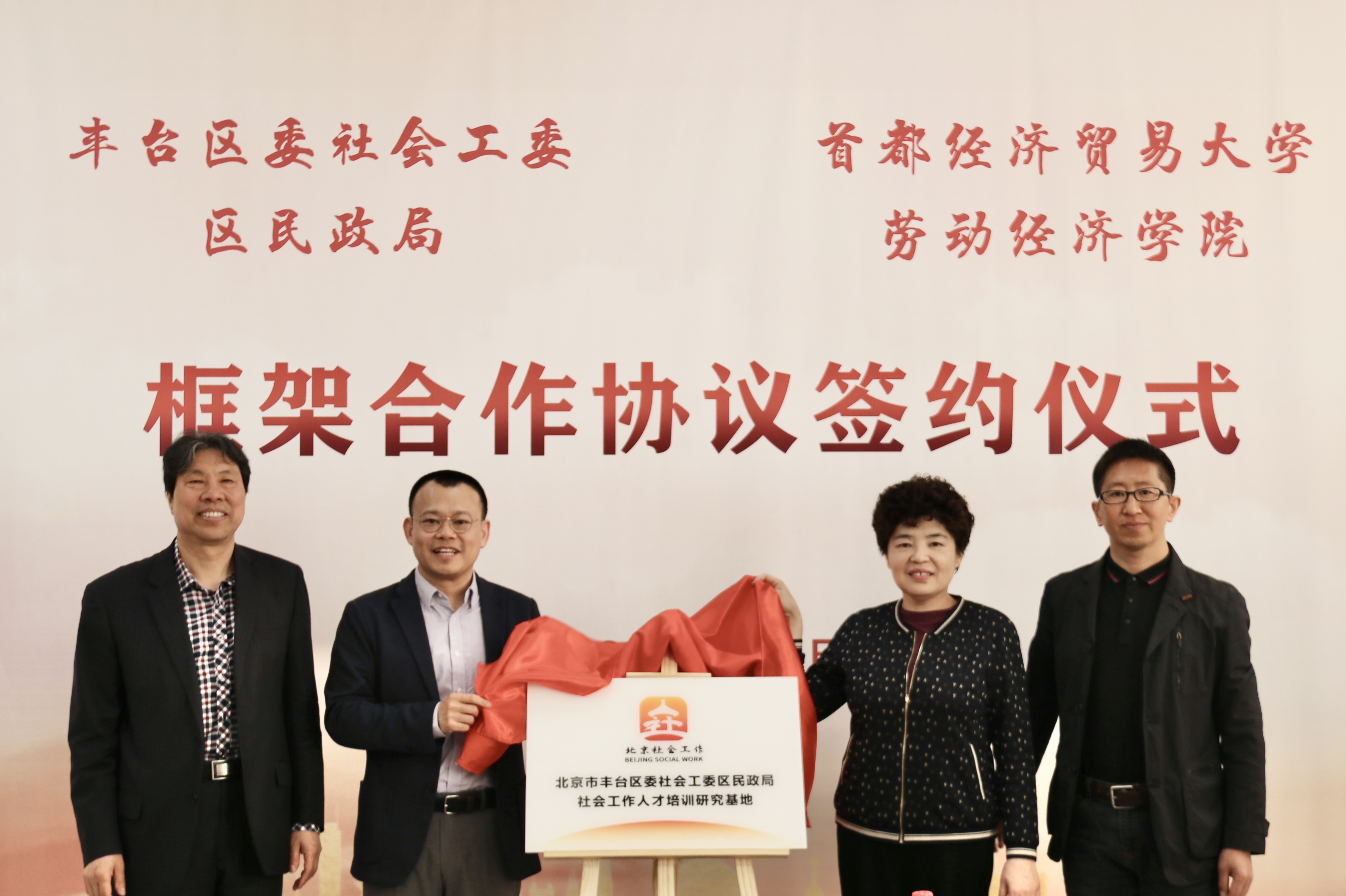为推进新时代首都社会工作专业人才培养,4月18日上午,17直播 与丰台区委社会工委区民政局签署框架合作协议签约仪式暨社会工作人才培训研究基地揭牌仪式在校本部博纳楼举办。丰台区委社会工委书记区民政局局长杨云,丰台区委社会工委委员区民政局副局长彭程,17直播 党委书记冯博,17直播 党委副书记、院长冯喜良出席会议,会议由17直播 党委副书记孙乐主持。