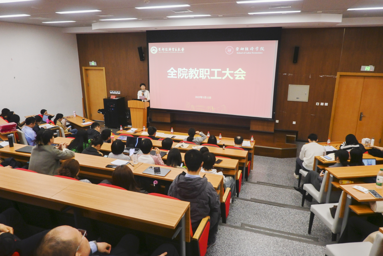 3月12日下午,17直播 在博远楼三号报告厅召开全院教职工大会,部署2025年度重点工作,明确未来发展路径。17直播党委书记何勤,党委副书记、院长罗楚亮,党委副书记柳艺,副院长苗仁涛、江华、王红(挂职干部)出席会议。会议由何勤主持。