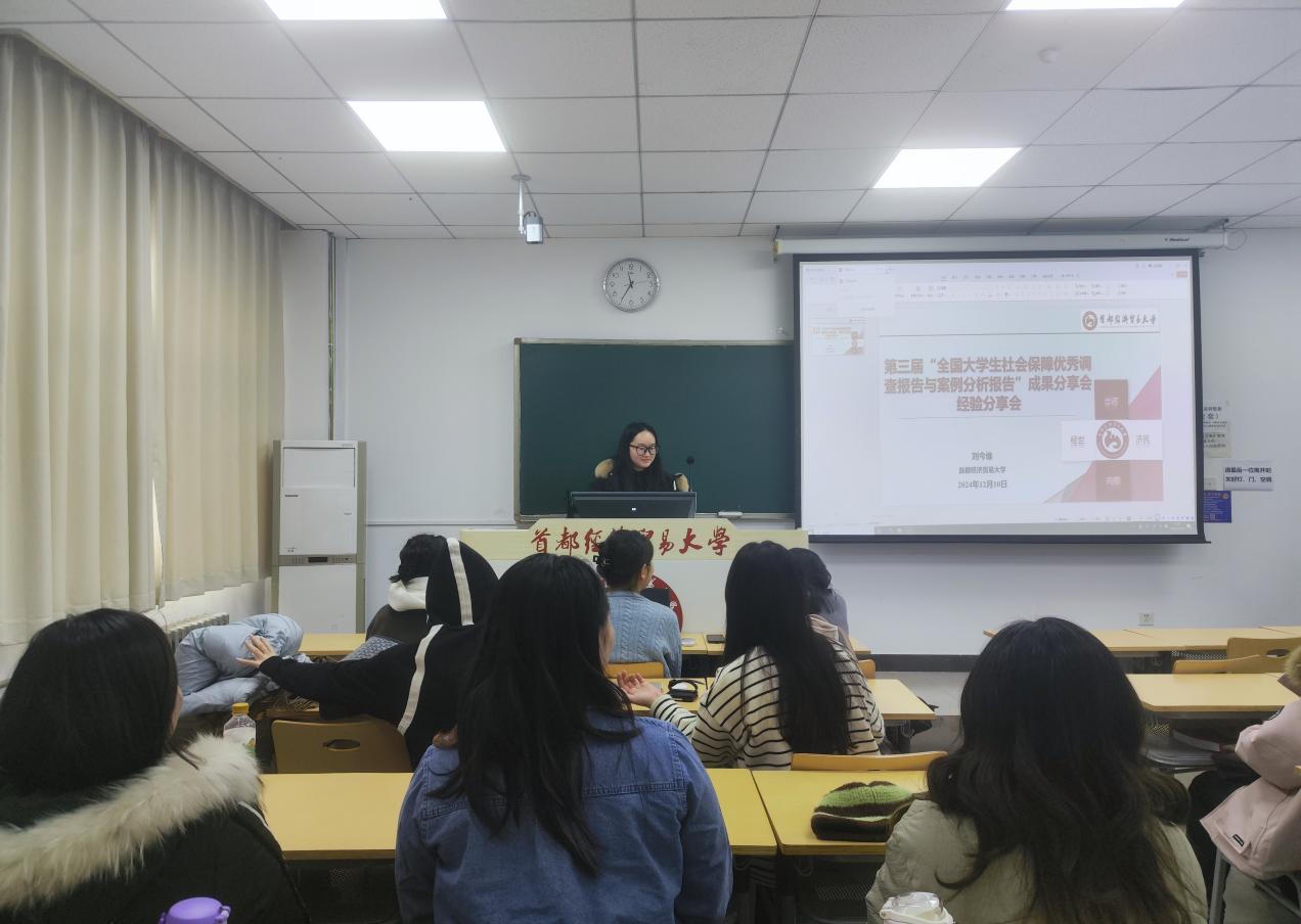刘今维同学带着满满的收获和深刻的感悟,与同学们分享了参会经验和参会论文的精华。刘今维同学在分享会上表示,这次成果分享会不仅是一个展示研究成果的平台,更是一个学习和交流的机会。通过与其他高校的优秀学生交流,她深刻感受到了社会保障领域研究的广泛性和深入性。她强调:“这次分享会让我意识到,社会保障问题不仅仅是政策层面的讨论,更关乎每一个人的生活质量和幸福感。”