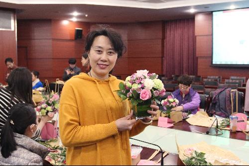 在插花环节,老师们在花艺师的指导下进行学习和创作,过程中彼此交流,不时观摩其他老师的作品,整个过程轻松惬意。最后,每位参加活动的老师都收获了一份满意的插花作品,并合影留念。