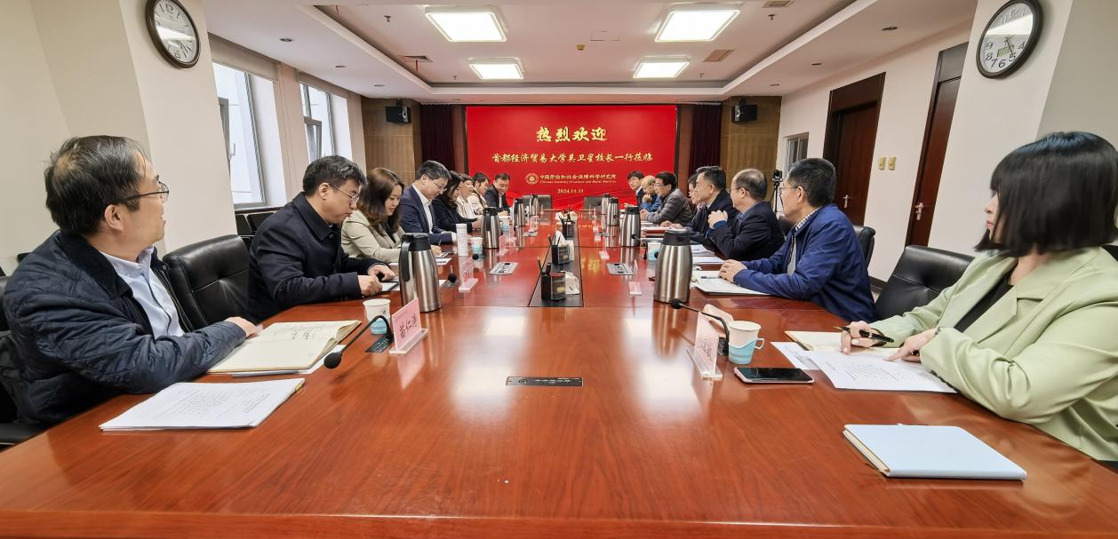 首经贸对外联络合作处处长徐彦红、17直播 全体班子成员,中国劳动和社会保障科学研究院院办(党办)、科研管理和学会工作处、智库工作办公室、就业创业研究室、人事处相关负责人参加座谈交流。