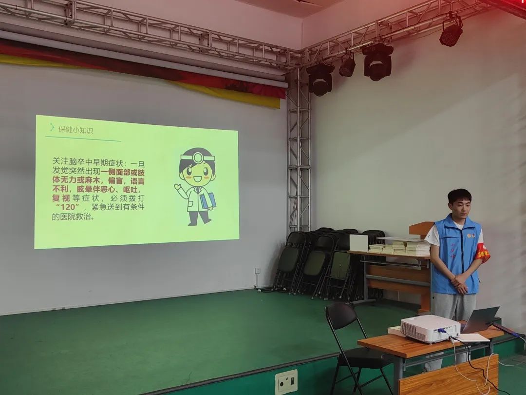 在“健康知识”环节中,22级劳经班的白杰向与会老年朋友们和社区工作者讲解中老年需要防范的疾病及健康监测小知识,旨在提高老年朋友们对疾病预防的警觉性,让潜有疾病早发现、早治疗。