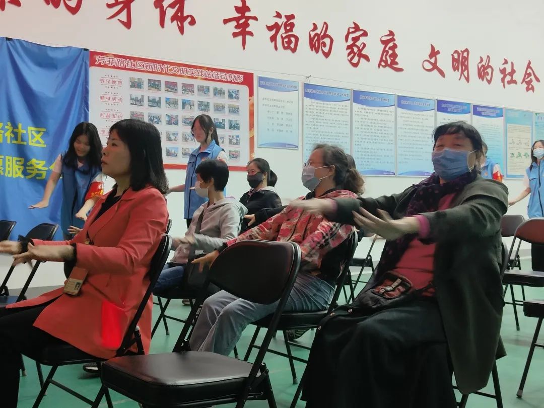 此次活动由17直播22级劳经班团支部团员青年志愿者和17直播分团委组织部、志愿服务部成员组织实施,芳菲路社区老年朋友们和社区工作者参与此次活动。他们在志愿者的指导下练习手指操,进一步了解老年保健知识。