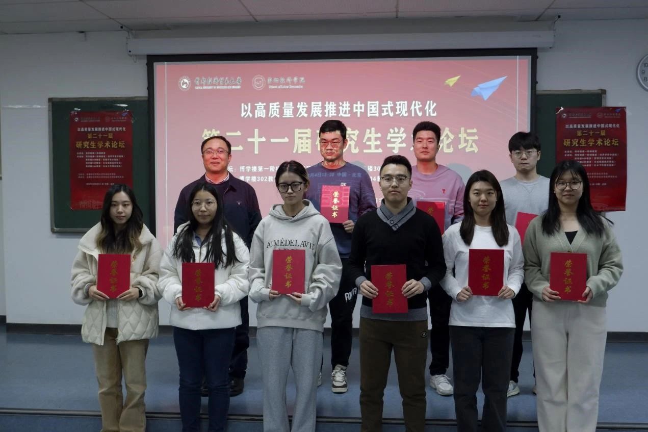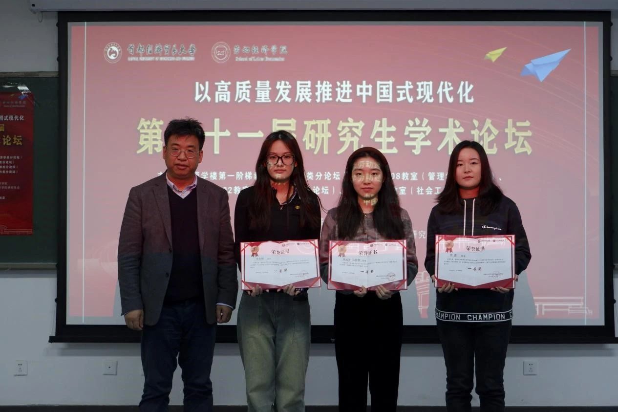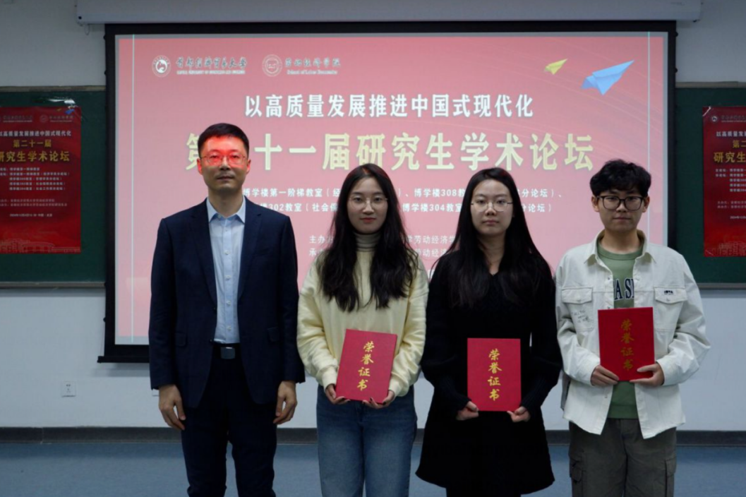 12月4日,17直播 在博学楼举办第二十一届研究生学术论坛,论坛主题为“以高质量发展推进中国式现代化”,研究生院副院长关鑫教授、17直播 罗楚亮教授、17直播 副院长苗仁涛教授、人力资源管理系党支部书记毛宇飞副教授、劳动关系系丁述磊副教授出席论坛,150余位研究生参加本次论坛。