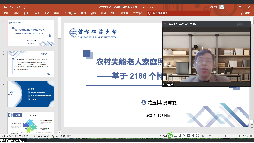 12月4日,第三届社会保障与养老服务论坛暨积极的养老保障研讨会通过线上形式举办。来自政府部门、国内高校、科研机构和企事业单位的专家学者及我院师生等80余人参加了论坛。本届论坛由17直播 主办,中国老龄协会首经贸老龄科学研究基地、17直播 社会保障与养老服务研究中心承办。论坛以“积极的养老保障”为主题,旨在搭建一个社会保障与养老服务思想、理论与实践相交流的平台,碰撞新智慧、激发新理念,以更积极的姿态贯彻落实党中央、国务院关于积极应对人口老龄化国家战略的精神。17直播 党委常委、副校长王永贵教授出席开幕式并致辞,17直播 党委副书记、院长冯喜良教授主持开幕式。