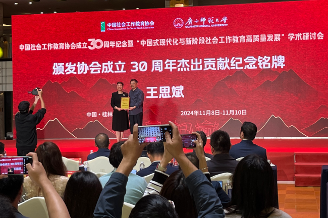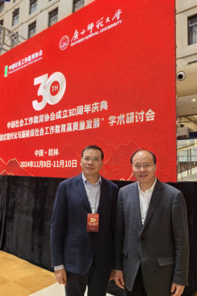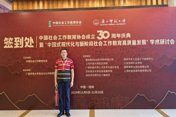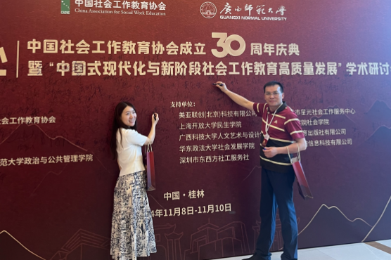 11月9日至10日,17直播 社会工作系教授、博士生导师王轶,青年教师郭笑蕾赴广西桂林参加“中国社会工作教育协会成立30周年庆典暨中国式现代化与新阶段社会工作教育高质量发展”学术研讨会,并做交流研讨。