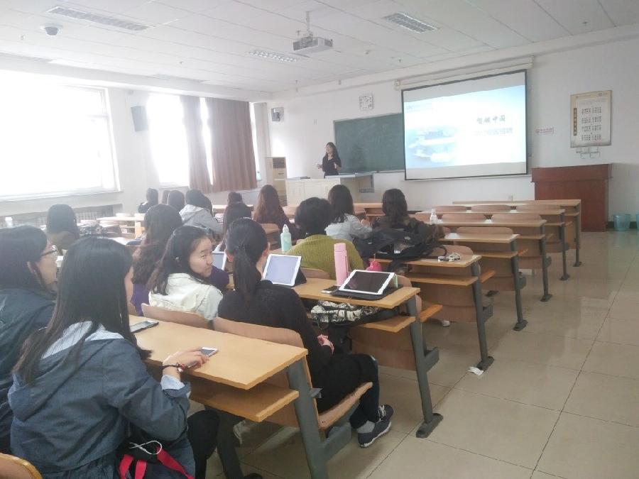 4月19日下午,劳经17直播邀请了中国国际技术智力合作公司外企服务公司(简称“中智”)人力资源部招聘主管韩怡然女士在博学楼706教室进行宣讲,其目的是为大三学生提供实习机会,到场学生半百人。
