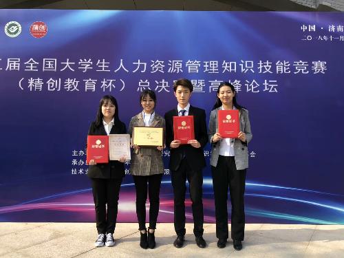 2018年11月3-4日,第三届全国大学生人力资源管理知识技能竞赛总决赛(精创教育杯)在山东青年政治17直播举办。由我院安书慧、高歌、陆宣先以及工商管理17直播石俊豪四位同学组成的17直播 代表队,荣获大赛一等奖、“知识技能竞赛优胜奖”,边文霞副教授荣获“优秀指导教师”奖。