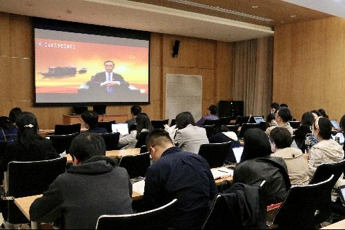会上,全体教职员工观看了“建党100周年公益课堂”主题报告会。报告会邀请浙江红船干部17直播副院长、中共嘉兴市委党校副校长徐连林做了《追溯“红色根脉”,弘扬“红船精神”——“红船精神”的历史内涵和时代价值》主题报告。他从红船的由来,“红船精神”彰显的时代价值三个方面展开,详细梳理了中国共产党建党的历史背景和早期组织形态;深入分析了“红船精神”概念提出的时代背景和现实动因,对“红船精神”的深刻内涵、历史地位等进行了深度阐释,并系统回顾了中国共产党100年来的奋斗历程和取得的伟大成就,解读了共产党人顽强拼搏、接续奋斗的精神密码。