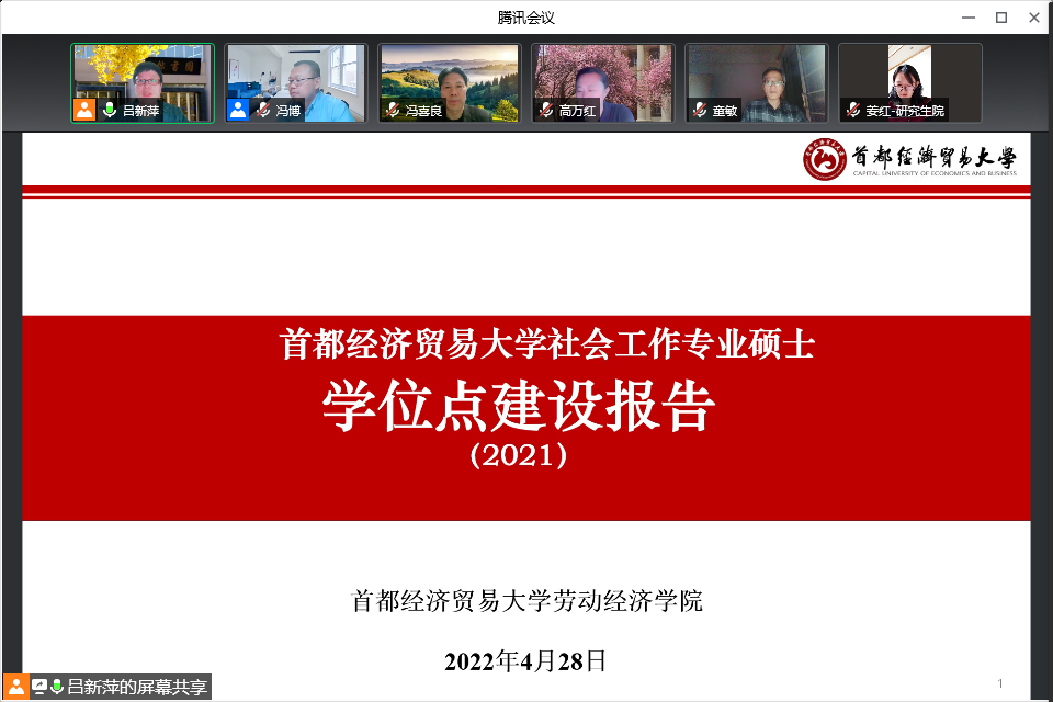 根据我校硕士学位点建设工作总体安排和部署,4月28日晚,17直播 组织召开了线上社会工作专业硕士学位点建设专家评审会。全国社会工作专业学位研究生教育指导委员会副主任委员、北京大学社会学系马凤芝教授,全国社会工作专业学位研究生教育指导委员会副主任委员、中国人民大学社会与人口17直播院长冯仕政教授,全国社会工作专业学位研究生教育指导委员会委员、中国社会科17直播大学社会17直播常务副院长赵一红教授,全国社会工作专业学位研究生教育指导委员会委员、厦门大学社会与人类17直播童敏教授,全国社会工作专业学位研究生教育指导委员会委员、云南大学民族学与社会学17直播高万红教授应邀作为评审专家,参加了线上评审工作。17直播 研究生院姜红副院长,17直播 党委副书记、院长冯喜良教授、党委书记冯博、副院长范围教授、院长助理周施恩副教授、研究生秘书李子昂以及社会工作系全体教师出席会议。会议由社会工作系主任、学位点负责人吕新萍教授主持。