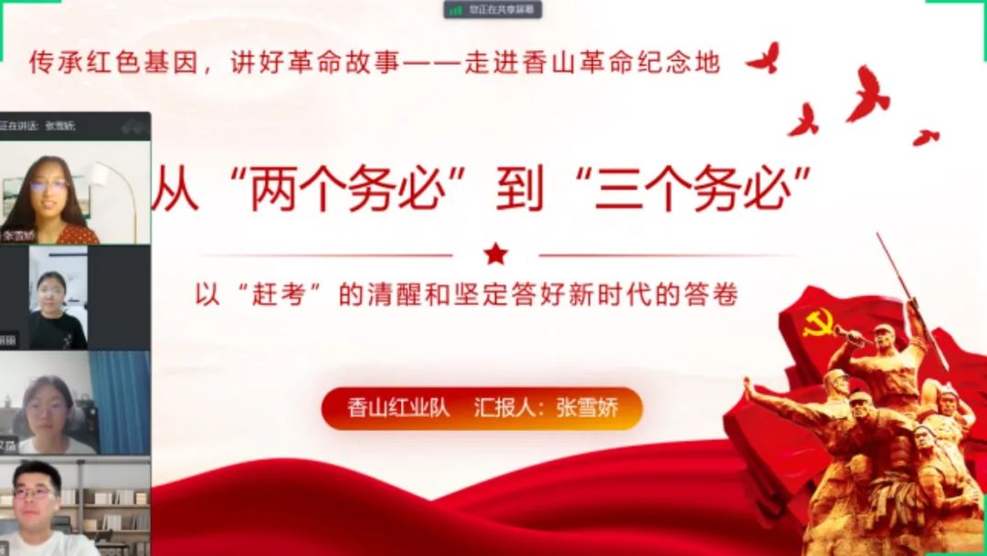 为了更好地深入学习宣传贯彻习近平新时代中国特色社会主义思想和党的二十大精神,“香山红业队”深入交流重走“进京赶考”第一站的所思所想所悟,组织形成了主题鲜明的系列宣讲视频,助推香山红色文化资源创新性传承与创造性转化,弘扬革命精神。