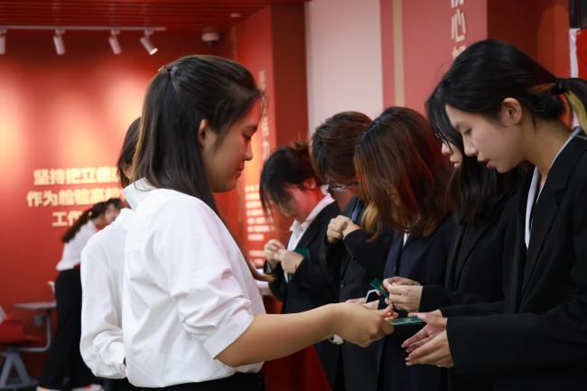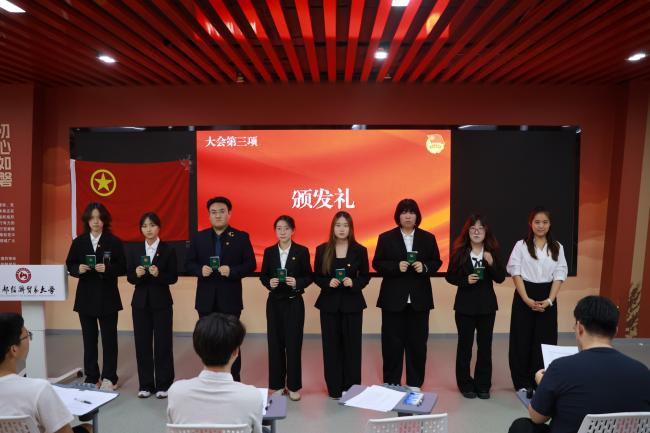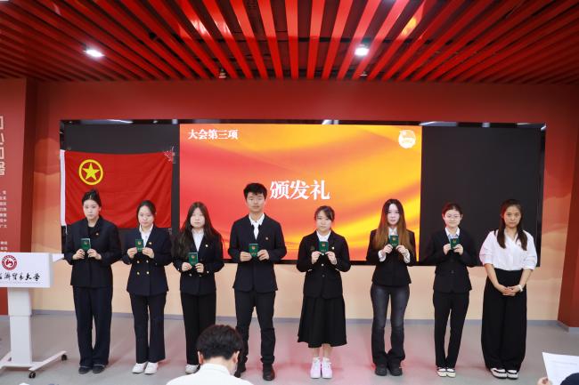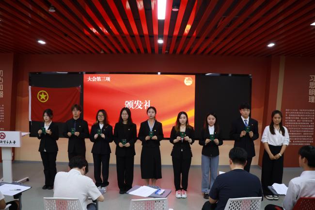 罗晨歌为新团员颁发团员徽章和团员证。这份象征使命与担当的团徽和团员证,不仅代表着新的身份,更承载的新的权利与义务,激励新团员在求知探索中锤炼本领,在攻坚克难中涵养品格。