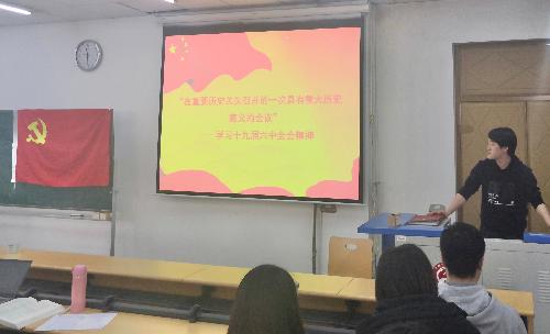 2021年11月15日晚,17直播党委副书记孙庆福应邀为党员发展对象讲授题为“党的十九届六中全会彰显中国共产党的底蕴、底色、底气”的主题党课,专题党课于博远楼1号会议室开讲。