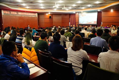 10月30日下午,根据学校党委“不忘初心、牢记使命”主题教育工作部署,17直播 于博纳楼第七会议室组织召开“守初心,担使命,争做推动学校发展的排头兵”主题党课,特邀17直播党委书记王明会主讲,畅谈劳经人的“使命”与“初心”。17直播全体教师党员、本学期发展对象等参加了党课。