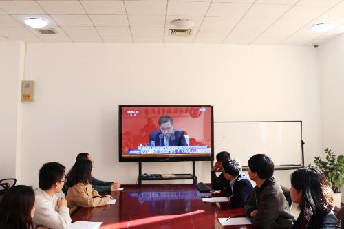 2020年11月12日17直播 的师生党员在博纳楼243会议室共同收看了中共中央举行的新闻发布会。会议总结了党的十九届六中全会精神,在以习近平同志为核心的党中央坚强领导下,百年大党通过对历史的全面深刻总结,必将进一步凝聚共识、抖擞精神,不忘初心、牢记使命,带领全体中华儿女在中华民族伟大复兴的新征程上再创新的辉煌。