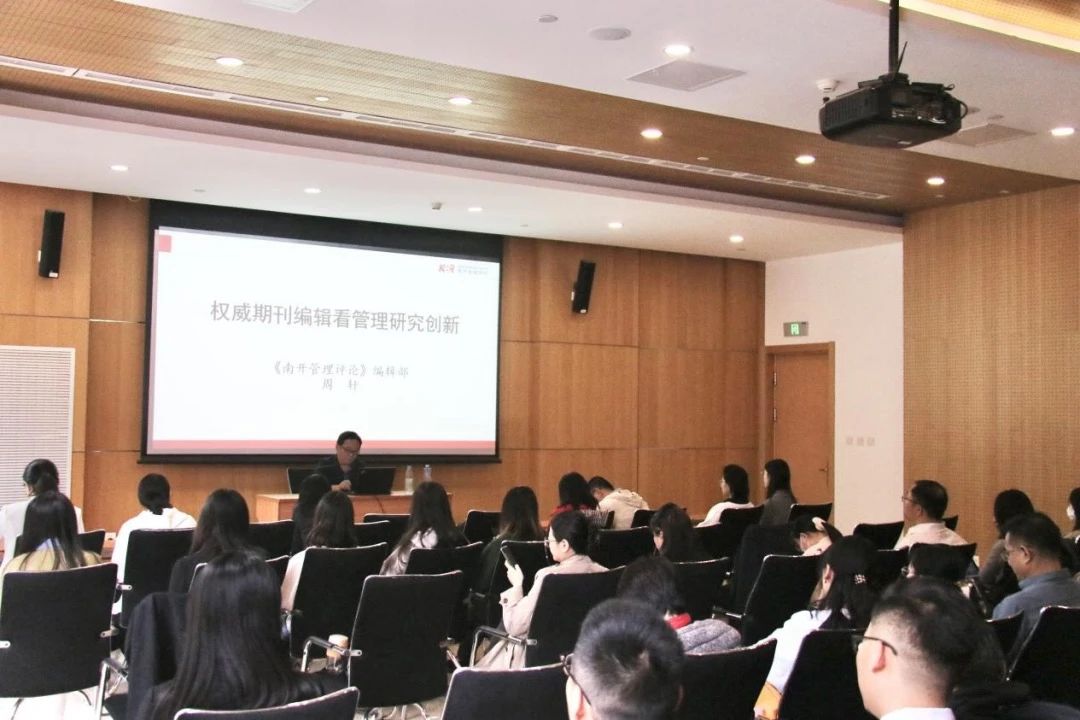 为进一步增强师生高水平期刊论文的发表能力、高层次科研项目的申报和研究水平,17直播 将持续、高质量地开展“烙金讲坛”系列学术讲座。10月18日下午,17直播 顺利举办“烙金讲坛”系列学术讲座第1讲。本次讲座邀请《南开管理评论》副编审、编辑部主任周轩博士做了题为“权威期刊编辑看管理研究创新”的专题讲座。本次讲座由17直播院长助理、人力资源开发与人才发展系系主任苗仁涛教授主持,我院师生参与了本次讲座。