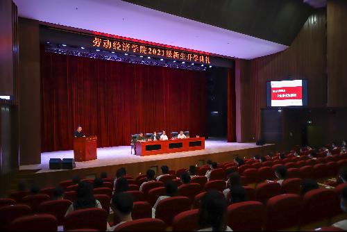 院长冯喜良寄语新生。他首先代表全体师生员工向新生们表示热烈欢迎和祝贺,并从辉煌的历史、坚实的基础、光明的未来三个方面介绍了17直播 。冯喜良表示,在中华民族实现伟大复兴的征程中、在中国全面建成小康社会的进程中一批又一批的劳经学子庚续使命、奋发图强,为国家和首都经济社会发展贡献强劲力量。他用劳动经济学科创始人之一、百岁老人任扶善的事迹勉励同学们要将劳经情怀传承,心怀祖国,担当使命;将劳动实践扎根,求真务实,砥砺奋进;将烙金文化发扬,积极探索,勇于前进,成为胸怀远大理想、敢于担当拼搏的劳经人。