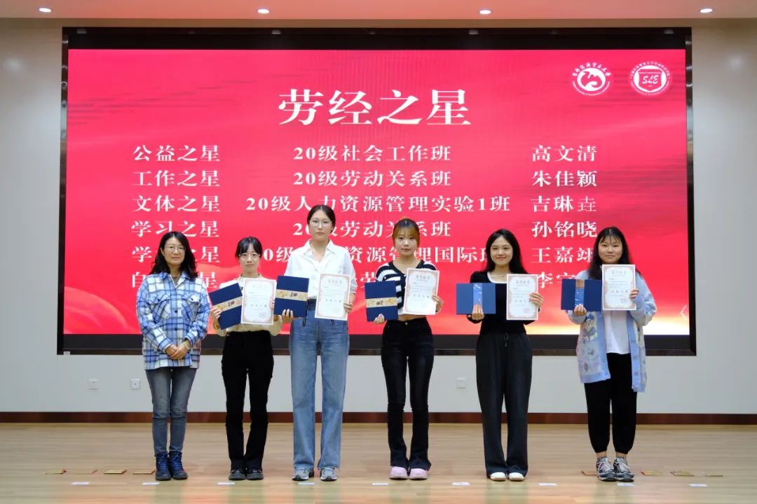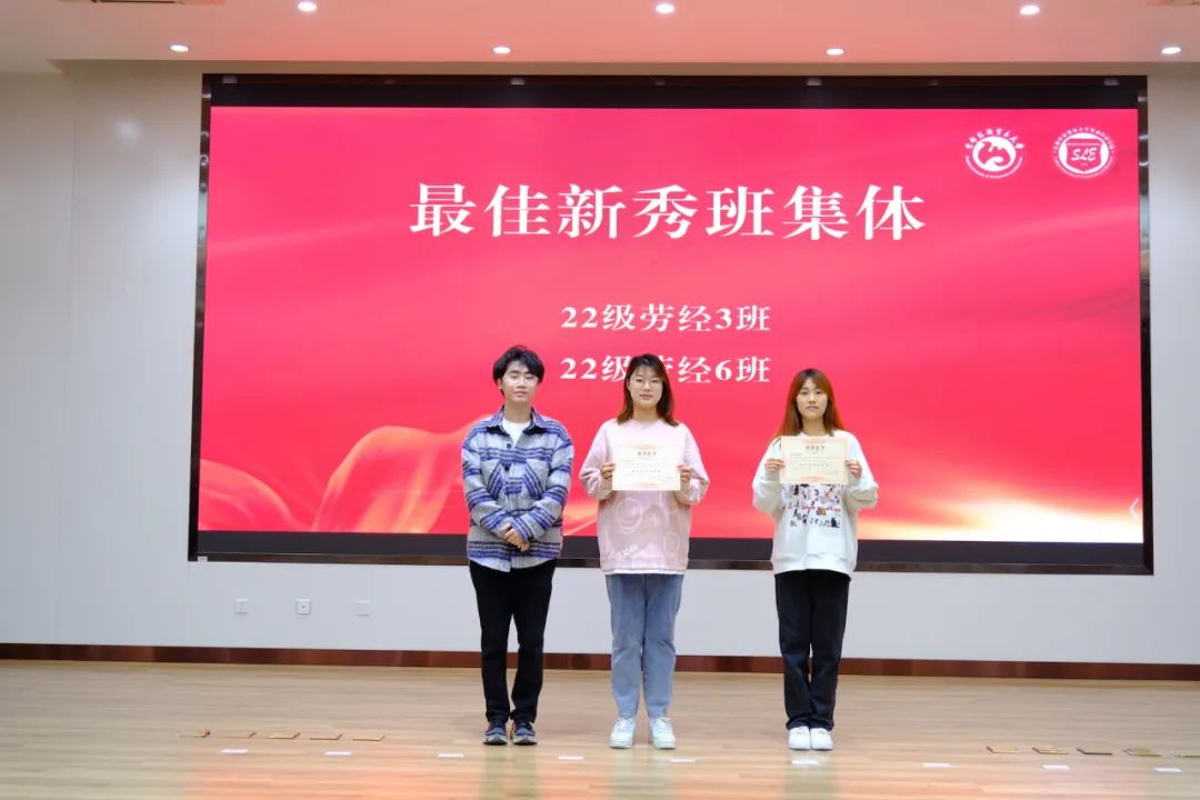 本次颁奖典礼分别为荣获社会工作奖、学术科研奖、文体优胜奖、优秀班集体、最佳新秀班集体、优秀组织奖、优秀志愿者奖、劳经之星、烙金奖章的同学进行表彰,参会领导和老师为获奖代表们颁奖。