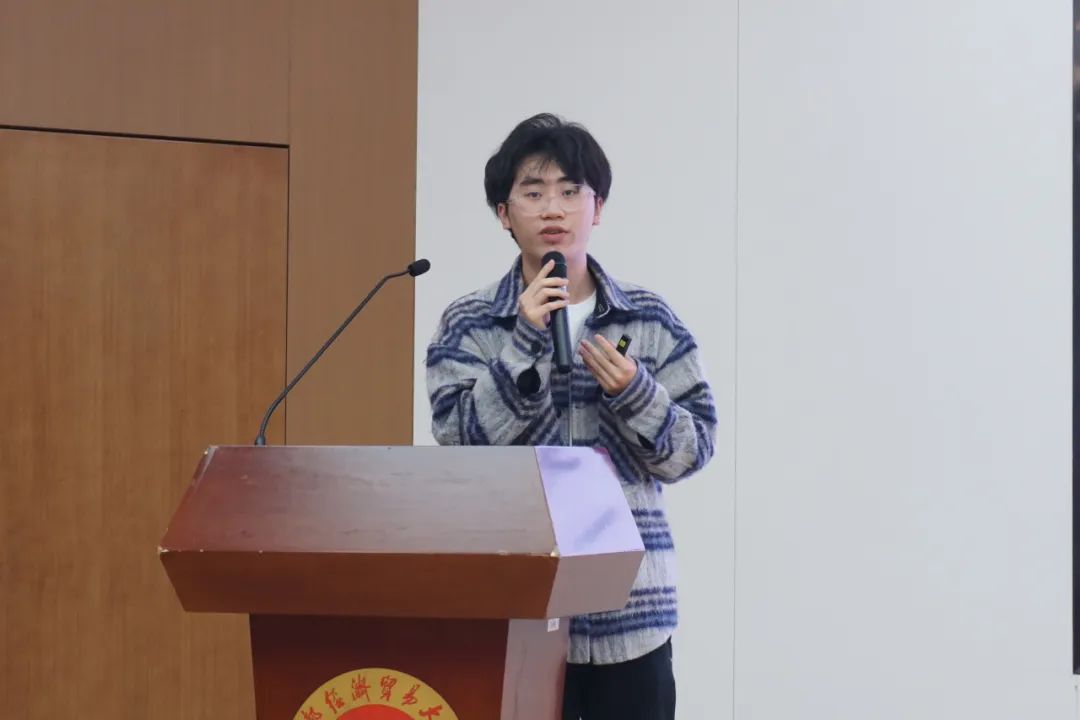 劳动烙印青春滚烫,智慧闪光沉淀成金。本次颁奖典礼最高荣誉“烙金奖章”获奖人韩国晟,以如何在毕业季收获一篇具备职场竞争力的简历这一话题出发,结合自己在首经贸的春夏秋冬,从学生竞赛、实习实践、学生工作和志愿服务四个方面,向同学们讲述自己的亲身经历与经验体会,并鼓励大家瞄准未来,积极规划,敢于挑战,富于创新,践行火热青春,全身心拥抱首经贸的四季,探索自己未来的发展方向,为成就更加优秀的自己拼搏奋进!