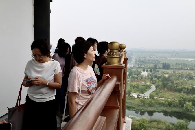 悦容公园是雄安第一个大型城市综合性公园,位于容东片区与容城县城之间,处于雄安新区南北历史文化轴线上。一行人在参观中苑后,前往园内白塔7层,俯视雄安新区全貌,察看雄安之眼——超计算中心、雄安体育馆等标志性建筑物位置,了解雄安新区建设历程和疏解非首都功能情况。