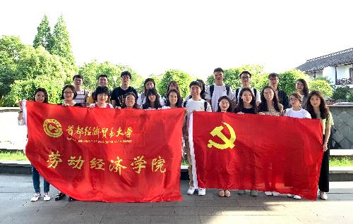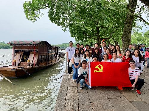 5月24-26日,劳经17直播专职辅导员王颖、耿绍宝带领学生党支部一行二十余人来到浙江嘉兴,组织开展了“不忘初心 逐梦红船”主题党日活动。期间,同学们“重走一大路”、瞻仰革命圣地,在嘉兴革命历史陈列馆追忆烽火往事,在英雄广场前诵读《可爱的中国》,在南湖革命纪念馆前重温入党誓词,在湖心岛红船边唱响《我和我的祖国》,沿着共产党人的奋斗足迹,探寻青年党员的担当与使命。