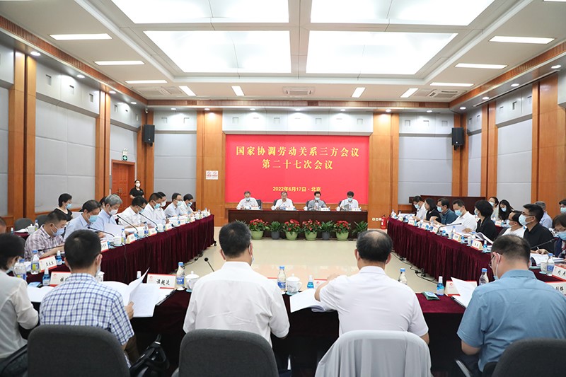 国家协调劳动关系三方会议第二十七次会议总结了2021年国家三方会议工作,部署了2022年工作任务,审议关于实施集体协商“稳就业促发展构和谐”行动计划的总结报告和国家协调劳动关系三方会议专家委员会组建等有关工作方案。人力资源社会保障部、全国总工会、中国企联、全国工商联有关负责同志出席会议并讲话。