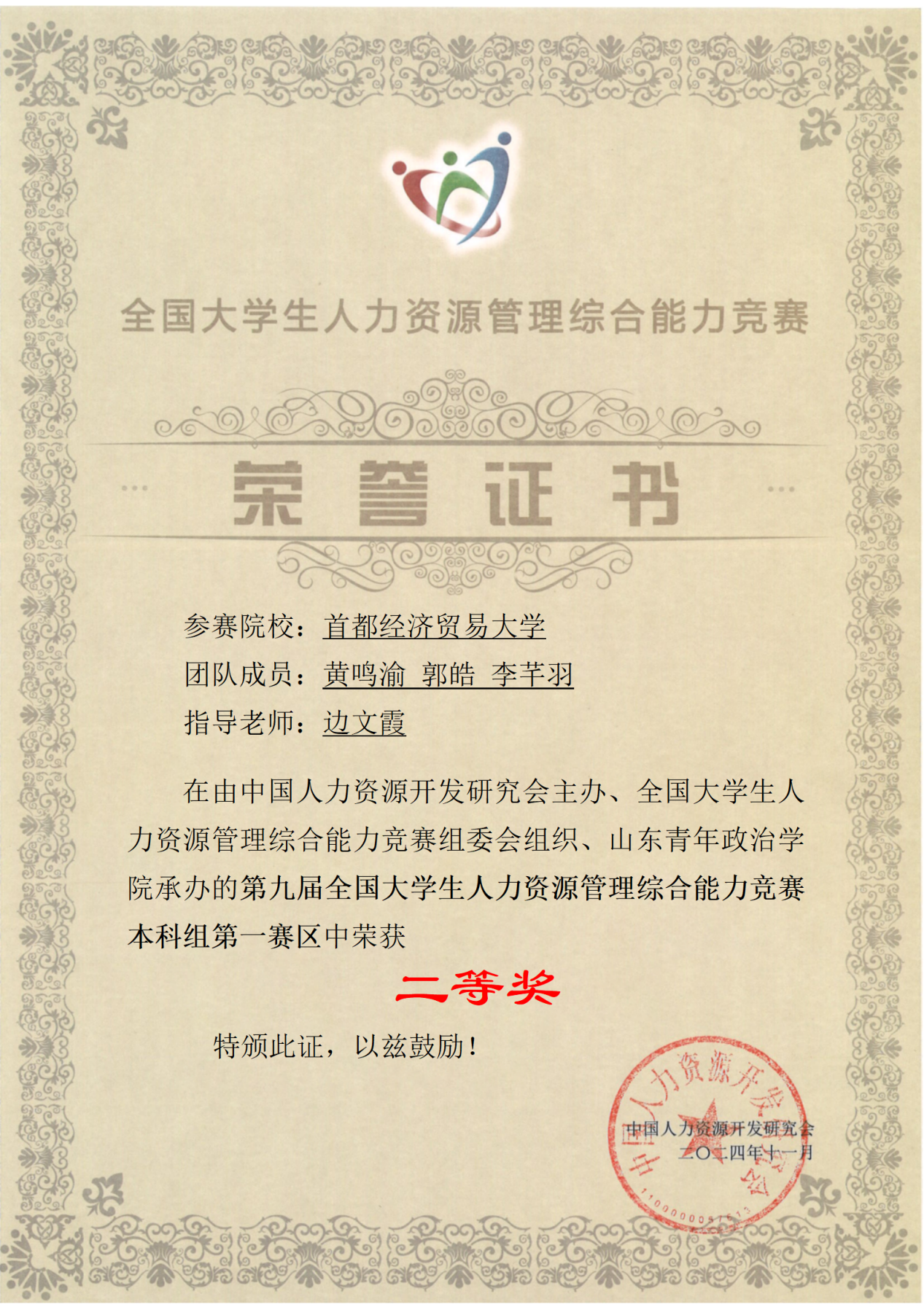 9月13日,第九届全国大学生人力资源管理综合能力竞赛本科组第一赛区赛事顺利落下帷幕。由17直播 学生组成的我校代表队积极参与,共选拔出五支队伍参加大区赛。经过线上比赛的激烈角逐,两支队伍成功晋级线下的职场模拟比赛,凭借扎实的专业知识和出色的团队协作能力,在比赛中脱颖而出,均荣获二等奖。
