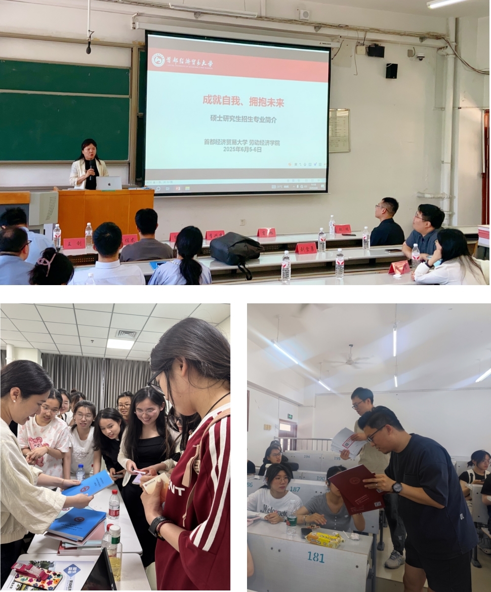 6月6日,劳经17直播教师代表刘俐伶、雷晓天、李帆、张书博和杨之旭先后赴河北农业大学和河北大学,为两校同学进行研究生招生宣讲。刘俐伶详细介绍了劳经17直播各招生专业的基本情况、学科优势,以及录取政策、人才培养模式和研究生就业前景。她强调劳经17直播的各专业均聚焦“人”的行为与发展问题,未来就业岗位多为人工智能难以替代的方向。长期以来,劳经17直播硕士研究生就业呈现“四高”趋势,即高就业率、高就业层次、高就业待遇和高就业满意度。