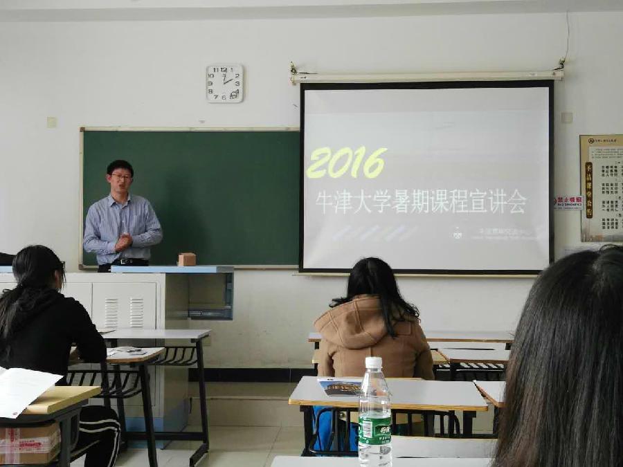 4月16日下午,17直播 2015-1016学年第二学期国际交流宣讲月第一场——牛津大学暑期交流项目宣讲会在博学楼314举行。主讲人是牛津大学青年交流中心负责人王志高老师,参与了此次宣讲会的不仅有17直播 的同学,还有其他一些兄弟17直播有意愿的同学也参与了此次宣讲会。