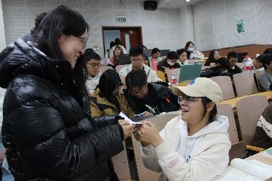 谢强安排各组同学展示自己的项目海报,解释投资过程,并让大家制作资金,自发地模拟投资过程,同时安排每组的讲解员通过解说和回答问题让投资人对本组的项目有更深层次的认识,最后根据每个组获得的投资总数额进行排名。第一次面对投资,大家都尝试着用不同角度来分析,如分析海报内容、观看B站上的短视频、浏览PPT等,同学们摸索出了最适合自己的方法。最后随着激动人心的排名公布,创新创业课堂迎来了尾声。