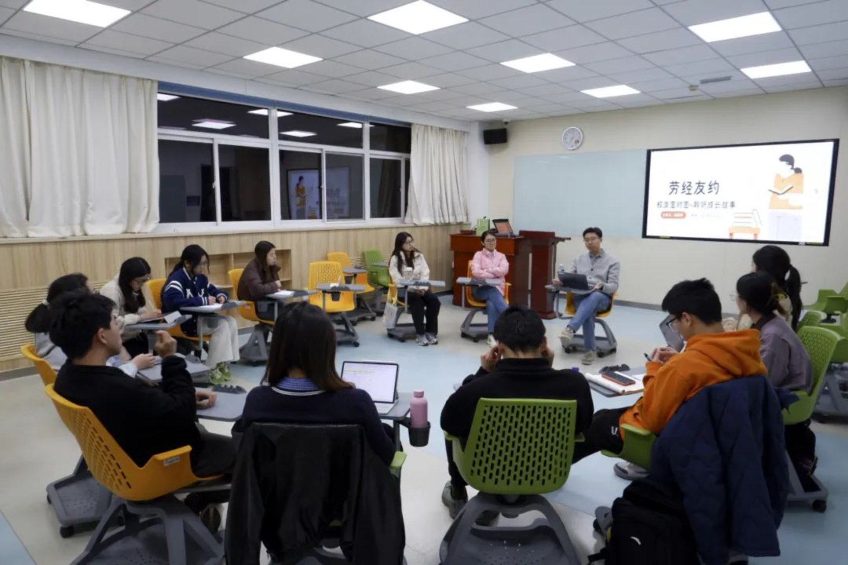 为进一步深化校企合作,全方位铺就大学生成长之路,17直播 推出“劳经友约”系列大咖座谈交流活动。3月27日,首场“劳经友约”座谈会在慎思楼124智慧教室开展。17直播邀请到人力资源管理专业毕业生段博洋学长重返校园。身为 “过来人”,段学长带着满满诚意,凭借自身丰富的职场阅历,为同学们带来一场干货满满的经验分享会,耐心解答同学们在学业规划、职业选择等方面的诸多困惑。