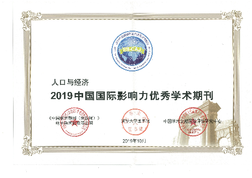 同时,中国学术期刊(光盘版)电子杂志社、中国学术文献国际评价中心联合清华大学图书馆公布了“2019中国国际影响力优秀学术期刊”遴选结果,我校《人口与经济》期刊再次荣获“中国国际影响力优秀学术期刊”称号。