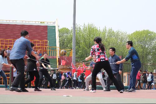 4月18日中午,在17直播分工会的积极动员、组织和筹备下,17直播教师代表参加了校工会举办的教职工趣味运动会。在“同心鼓”项目比赛中,17直播吴博棣、范围、张航空、魏文一、张成刚、毛畅果、李楠、刘爱华八位教师相互配合、同心协力,获得了总分第六名的好成绩。