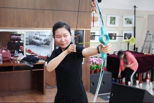 在集体项目的比赛完成后,17直播教师来到了工会二层大厅参加了射箭、保龄球、沙包掷准、飞镖、定点投篮和踢毽子等多项趣味个人项目的比赛。