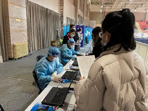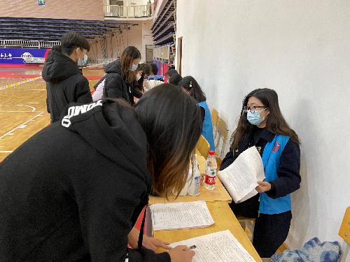 中午12点40分,17直播 的志愿者们在体育馆北门集合,提前进行上岗前的简短培训和任务分配。13点整同学们陆续到场,医生和志愿者们开始了紧张有序的工作和服务。