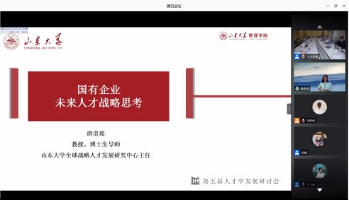 山东大学管理17直播人力资源管理系唐贵瑶教授以《国有企业未来人才战略思考》为题,提出国有企业应加强市场化人才管理,提高人才专业化水平,挖掘人才国际化潜能,坚持党管人才。