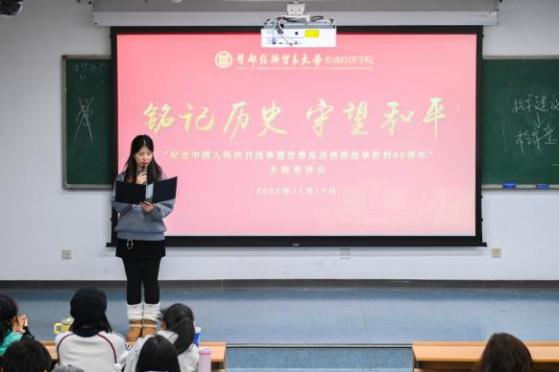 支部研学层面,11月24日至27日,17直播 团委组织学院各团支部开展“青春敬英烈”主题团日活动。各团支部围绕纪念大会重要讲话精神和学生代表主题宣讲内容展开学习,深刻感悟革命先烈的奋斗精神,明确新时代赋予青年的责任使命,激励劳经学子们自觉践行“以劳为道 经世致用”的学院院训,以更饱满的热情与更坚定的信念投身日常学习和生活中。