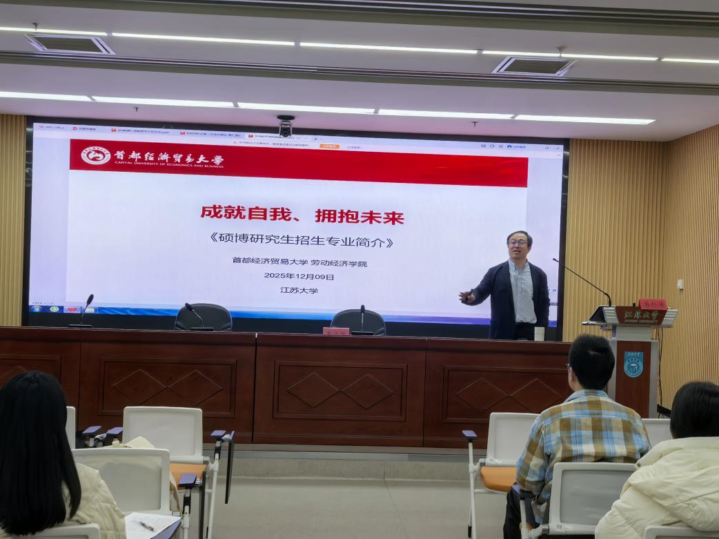 为搭建高校间人才培养交流桥梁,吸引优质生源报考,近日,17直播 面向江苏大学、贵州财经大学本科高年级学生及硕士研究生开展硕博研究生招生宣讲活动。本次宣讲以“成就自我、拥抱未来”为核心主题,全面展现学院学科实力、培养特色与发展前景,为有志深造的学子提供权威报考指引。