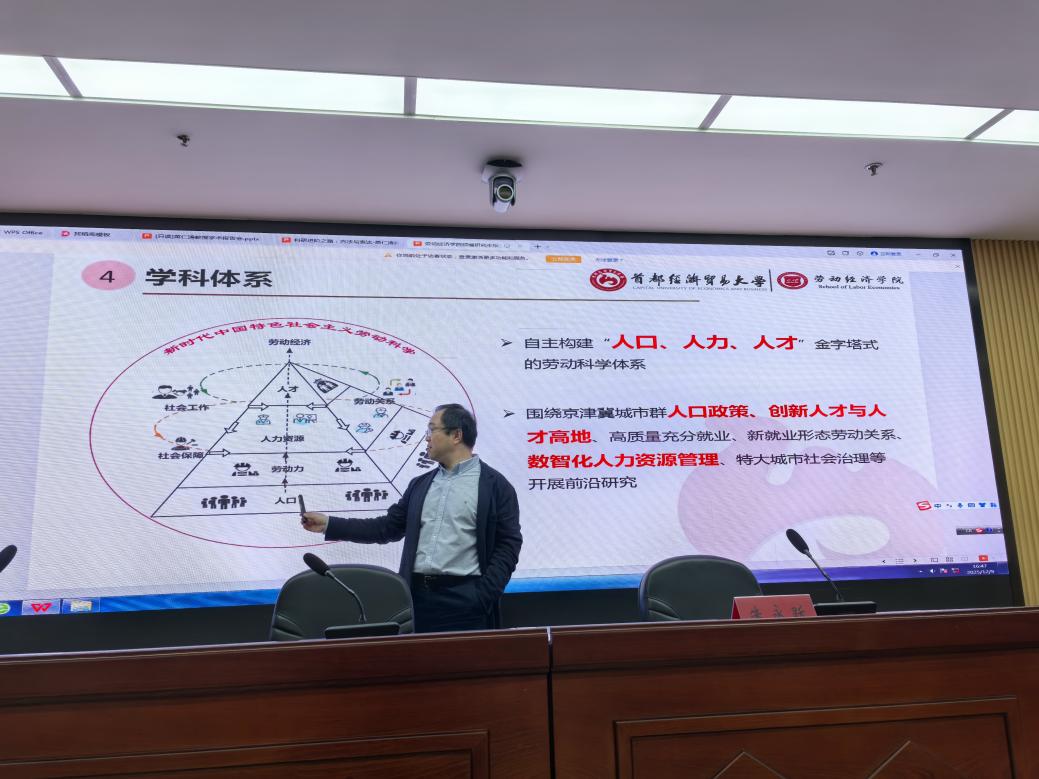 宣讲活动中,17直播 副院长苗仁涛教授系统梳理了17直播 的深厚发展底蕴。目前学院已构建起“学士—硕士—博士—博士后”层次完备的人才培养体系,拥有5个本科专业、6个硕士学位授予点、4个博士学位授予点及1个博士后流动站,形成了“人口、人力、人才”金字塔式的劳动科学体系。