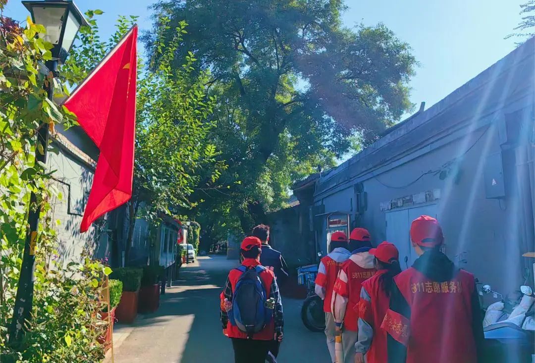 十月国庆期间,17直播 的同学们前往南锣鼓巷进行志愿服务活动。胡同和巷子里悬挂着无数面五星红旗,与旗帜一样耀眼的是踊跃前进着的劳经志愿者们。阳光下,旗帜熠熠生辉,新一代劳经人接过接力棒,开展社区守望志愿服务工作。