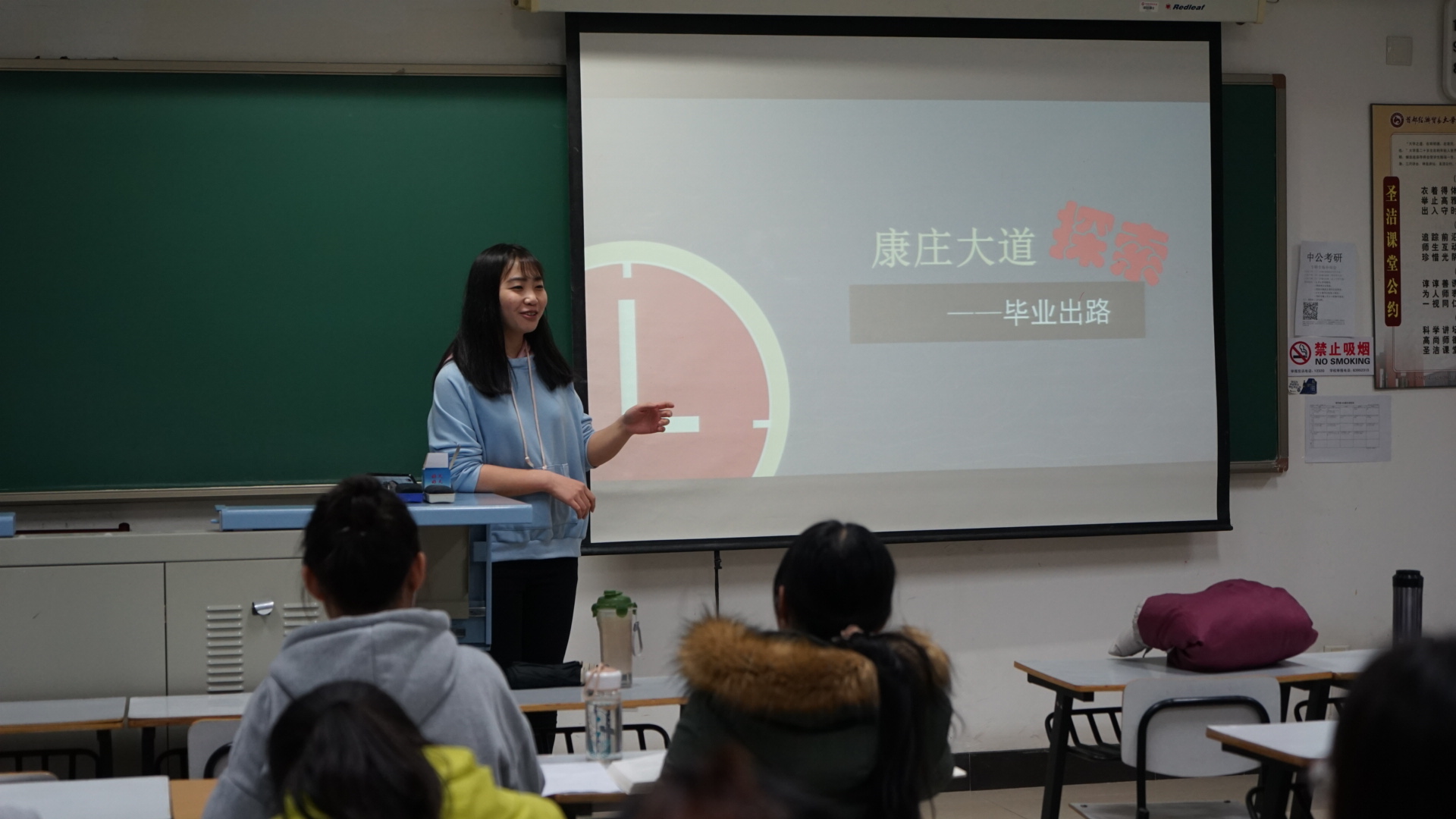 3月22日晚,17直播 2016级新生于各班晚自习教室,展开了以“生涯规划坊”为主题的新生成长课堂。此次新生成长课堂由各班班助主讲,对考研、出国、就业等三种较为广泛的毕业走向进行介绍,为同学们普及了选择各种就业走向可能遇到的问题。