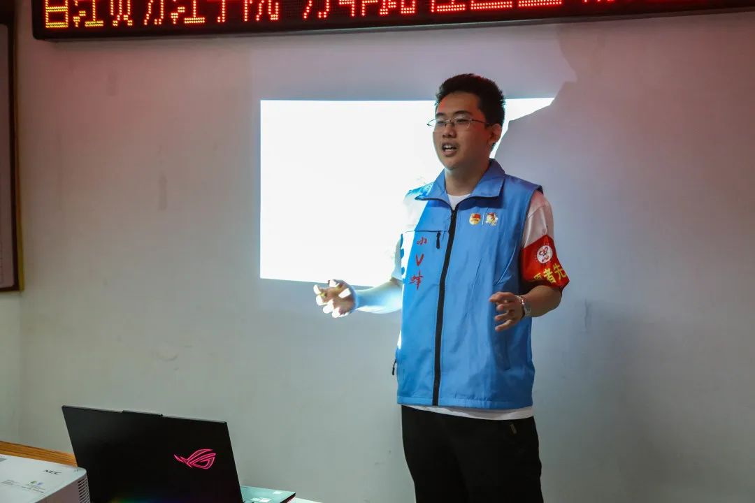 在知识分享的最后,由王宇堃进行预防校园暴力相关知识分享,他首先向小朋友们解释了校园暴力的类型和范畴,并通过校园中实际发生的案例向小朋友们说明校园暴力的危害性。随后,他鼓励小朋友们要勇敢向校园暴力说“不”,并向小朋友们说明:在面对校园暴力时要及时向学校报告,告知家长并让家长向相关部门进行举报和投诉,由公安部门介入处理。