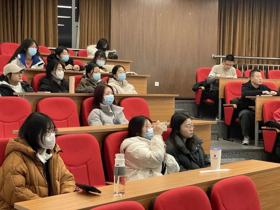 讲座结束后,同学们仍意犹未尽,围在学长身旁,就自己在岗位选择、复试备考等过程中遇到的问题进行提问,学长耐心细致地为同学们一一做出解答和建议。