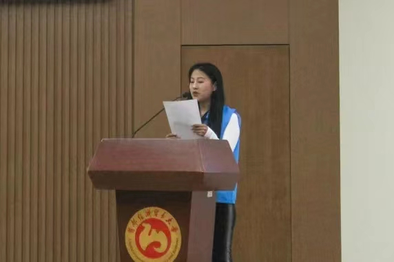 最后2021级劳经2班的王佳艾,她作为行知学校支教志愿者代表,在支教过程中她鼓励不善言辞的孩童勇敢表达自我,而后收到小女孩亲手折叠的千纸鹤。她希望可以有更多人加入志愿服务这个大家庭,让社会因为我们变得更有温度。