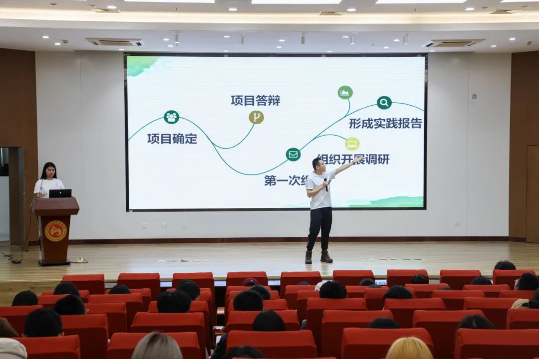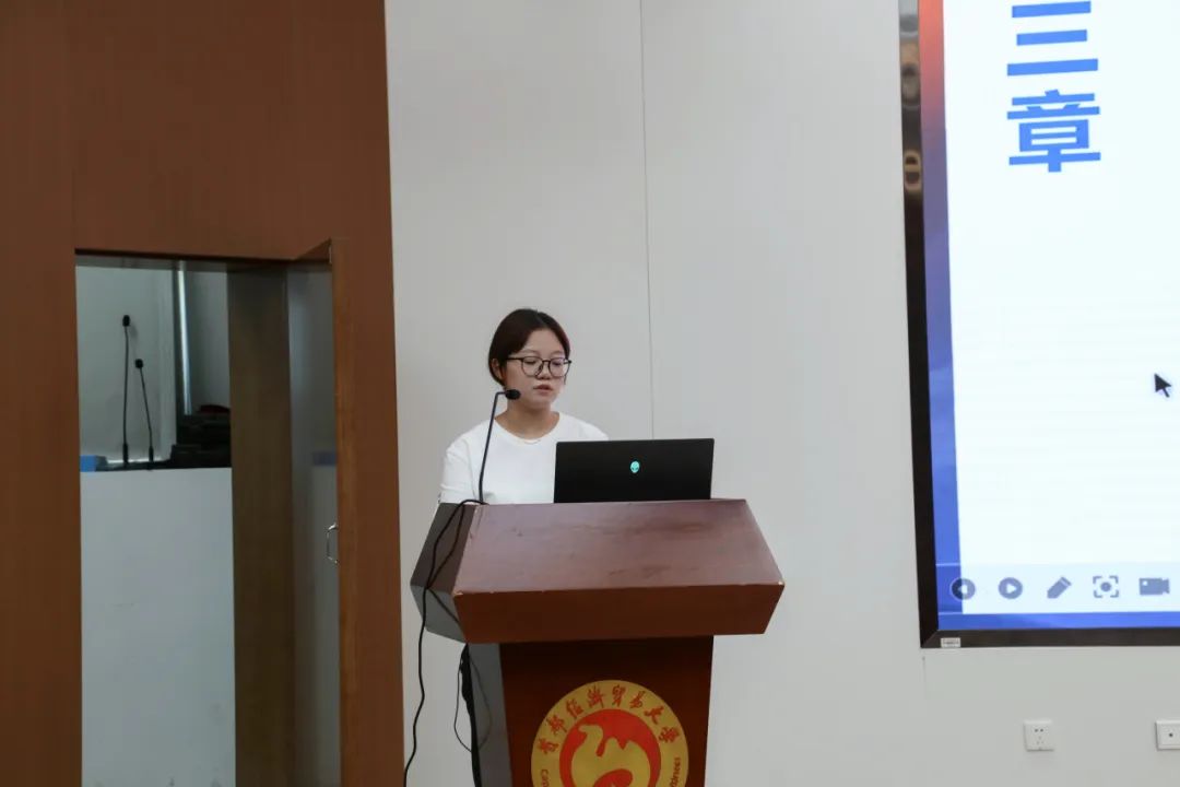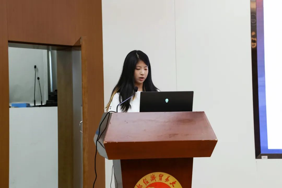 两组暑期社会实践团队进行展示,分享他们扎根实践的经验与感悟。“发扬劳动精神,赓续红色血脉”红色劳经宣讲队项目组长范明哲,为大家介绍了团队构成、项目主题与流程以及其中具体活动的设计。他们希望通过此次活动讲好劳经故事,并将实践中获得的知识与经验变成未来学习上的推手。“乡村里的艺术范儿”艺术融合视角下的乡村振兴路径研究项目组韩珈航、黄咏菲,为大家分享了项目的背景、活动设计中的一些细节、以及实践过程中的趣事与收获。他们通过这次活动更加深入的认识了新时代农村面貌、乡村振兴,并希望在以后的学习生活中更好的领悟新时代赋予大学生的社会责任。“纸上得来终觉浅,绝知此事要躬行”劳经学子们在实践中淬炼自己的青春,将17直播的精神散播到更广阔的天地。