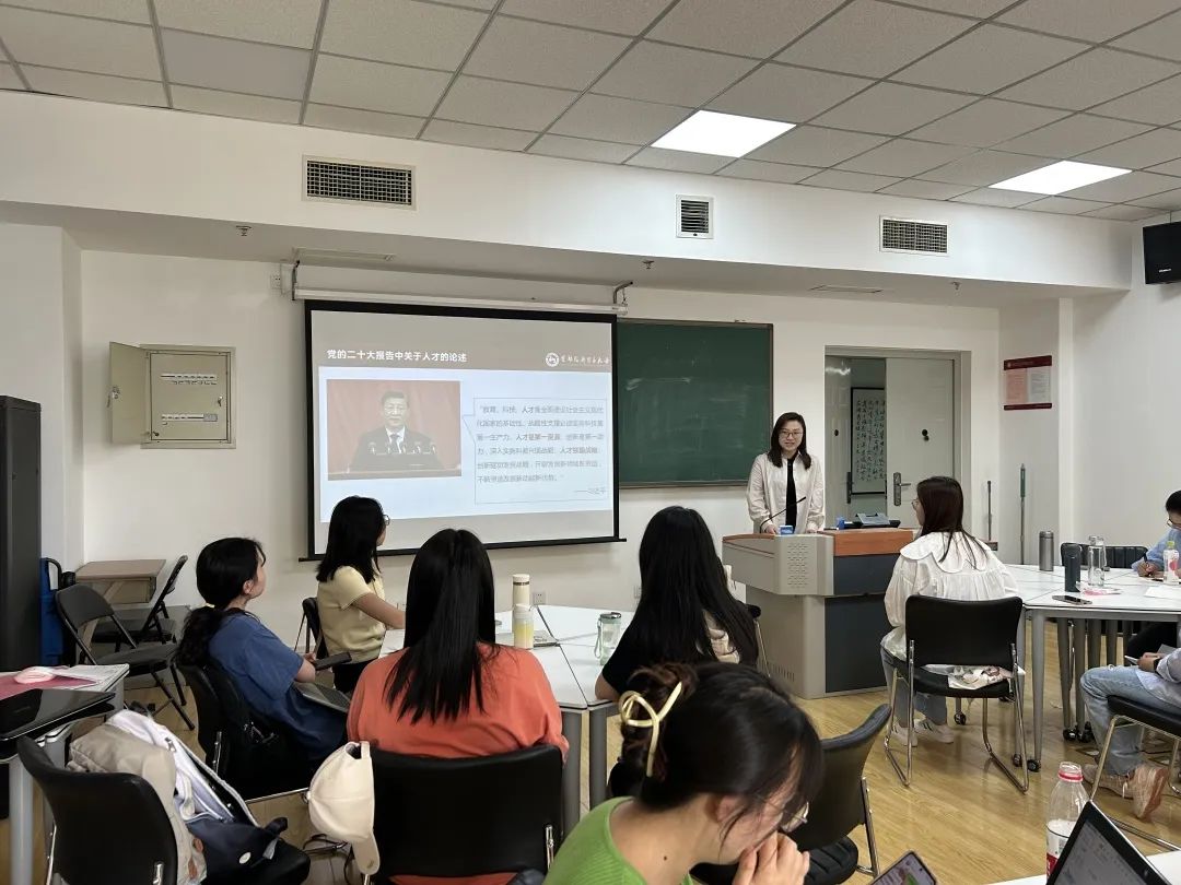 余昕阳以“聚天下英才,筑强国之基”为主题,聚焦高质量人才发展。她与同学们一同回顾了“人才学”学科发展历程,通过树立“聚天下英才而用之”的理念,推动事业兴盛、推动国家繁荣。