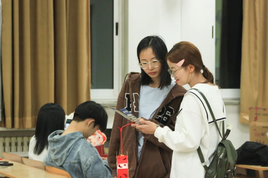 远方的明月轻轻升起,淡淡的秋意渐渐弥漫。随后主持人带领新生进行了一系列小游戏,通过制作花灯、猜灯谜等等,传递着劳经的温情。大家你一言我一语,银白的月光照耀着一张张笑脸,相信这份感动与欢乐也会永远留存在大家的心底。