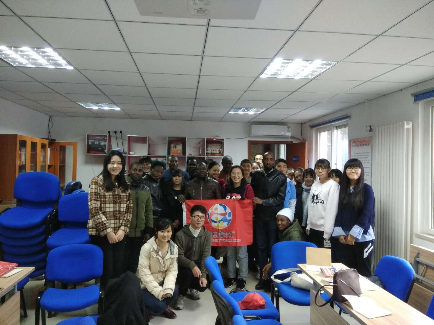 2017年11月12日下午,17直播 团学组织志愿服务部在北京市朝阳区安立路大屯爱在一起社区青年汇举办了教外国人说中文的活动。参加本次活动的志愿者有劳经17直播17级赵婧桦、姜雪月、贾晨然、蔡志芬等。本次活动的目的是传播中国文化,在互动与交流中建立学生与外国友人之间的深厚友谊。